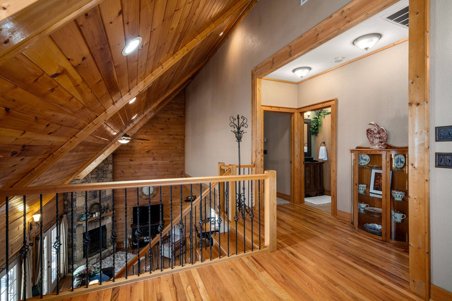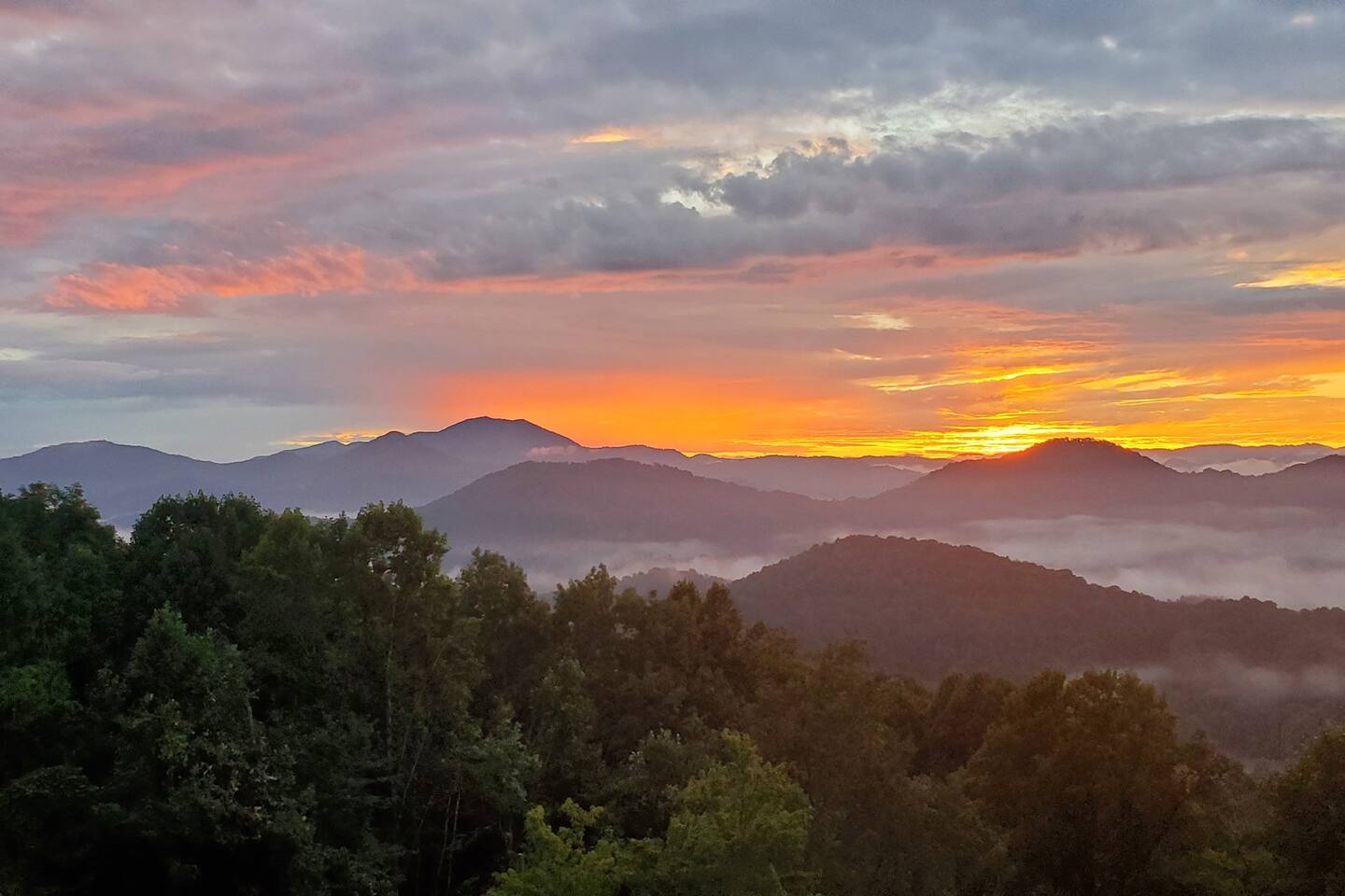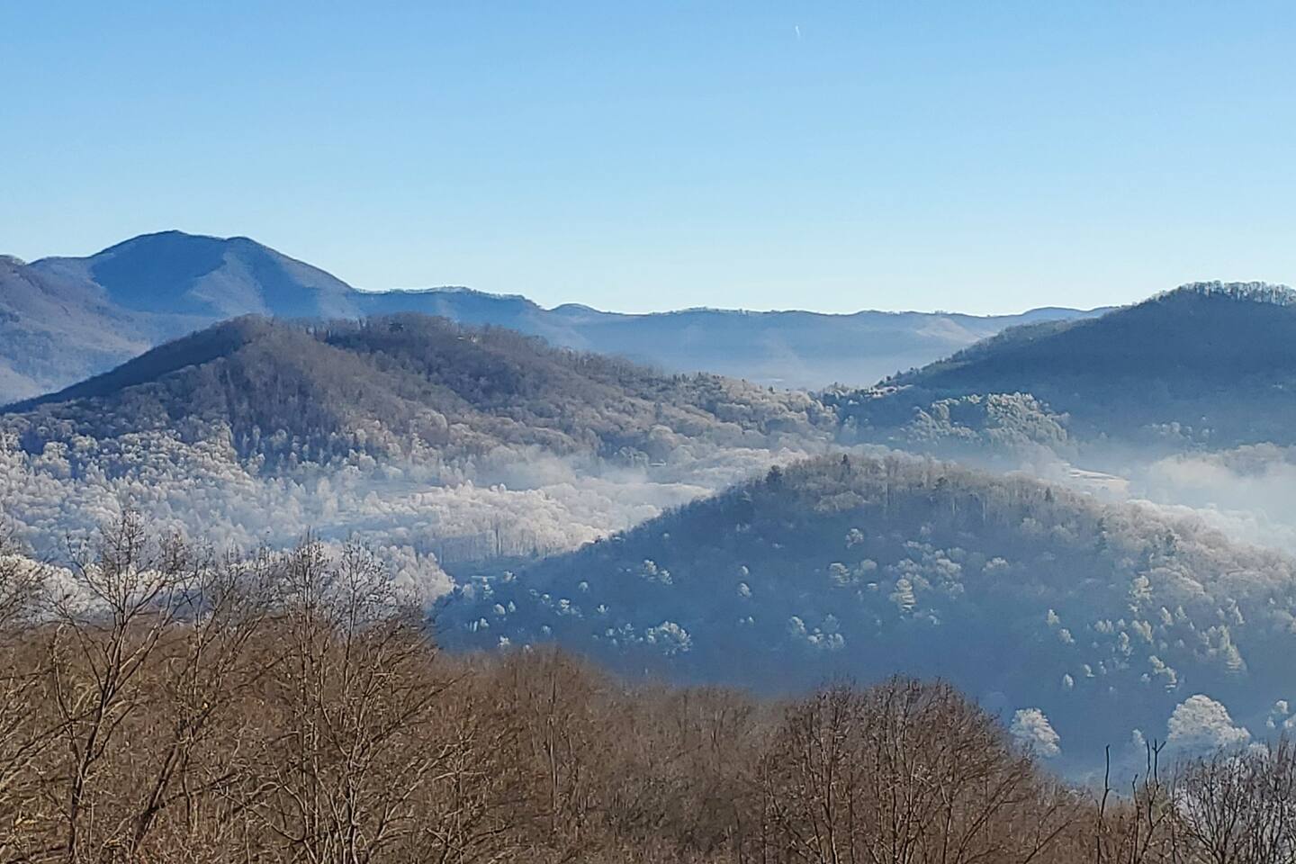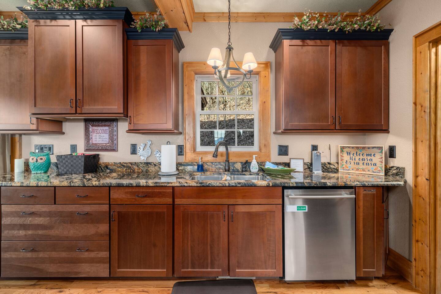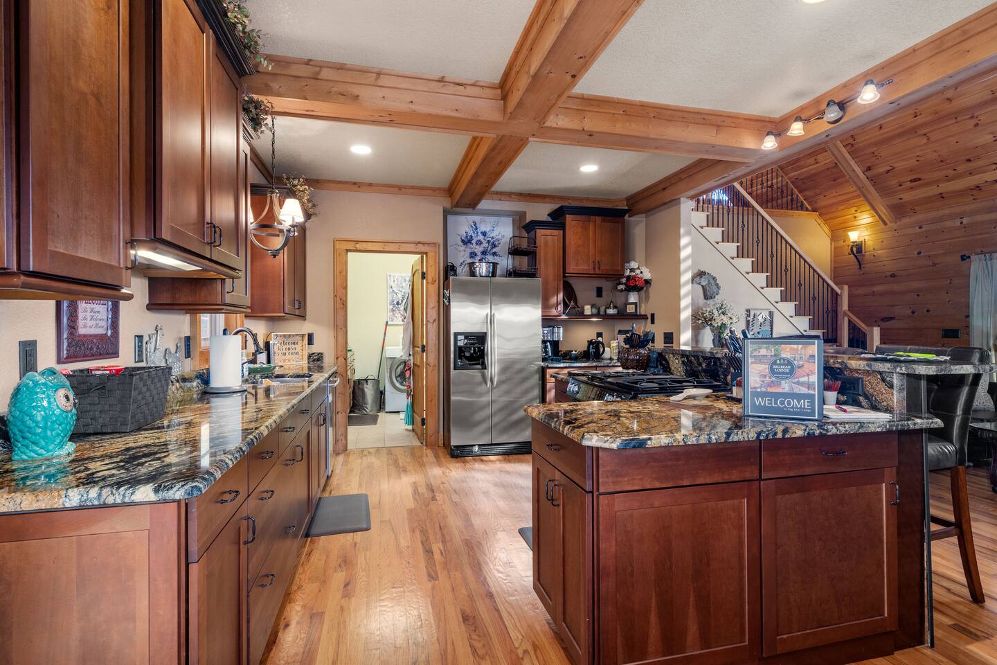 2,750 Sq Ft | Big Bear Lodge, Grand Double Deck, Magnificent Views, Large Gazebo with Hot Tub, Gas Fireplace Excellent Cell Service, Reliable Wi-Fi (for remote workers), paved/maintained roads to cabin, driveway is rough concrete/inclined and not recommended for motorcycles/trailers. 1King/2 Queens/Bunk Beds Hike, golf, ski, shop, or simply kick back with your closest friends and family with the Great Smoky Mountains as your backdrop at this luxurious Waynesville cabin! Bedroom 1: King Bed | Bedroom 2: Queen Bed | Bedroom 3: Bunk Beds | Bedroom 4: Queen Bed OUTDOOR LIVING: Grand Double Deck, Views of the Smokies/Blue Ridge Mountains, patio/lounge furniture, fire table, propane grill. NEW Gazebo with hot tub. INDOOR LIVING: Chef’s kitchen, 5 SmartTV's, (cable/streaming) gas fireplace, books/games, ensuite bathroom w/ jetted tub & walk-in shower, open-concept layout, natural light. Spacious loft with wet bar and extra seating for dining/games/puzzles. Loft also has 2 Bedrooms with bath and double sinks. KITCHEN: Fully equipped, granite counter, gas stove, Keurig & drip coffee makers, tea kettle, microwave, toaster, toaster oven, Crockpot, blender, waffle maker, cooking utensils, pots & pans, ice maker, spices, dishware & flatware GENERAL: Free Wi-Fi, ceiling fans, central heat & A/C, towels/linens, washer/dryer, hair dryer FAQ: Exterior security cameras (facing out), 1st-level to driveway PARKING: Gravel driveway (3 vehicles) Other things to note: In addition to the nightly rate, the following fees will apply: $175 Cleaning Fee (includes extensive cleaning and turnover before every guest) $100 Pet Fee – (1 DOG LIMIT – 50lbs) 11% Tax – NC State & Haywood County Taxes. Just 25 minutes to the Blue Ridge Parkway Just 25 minutes to Cataloochee Ski Resort 40 minutes to Harrah's Casino in Cherokee 45 minutes to the Great Smoky Mountain National Park 40 minutes to Asheville's famous BILTMORE HOUSE 20 minutes to Waynesville 15 minutes to Maggie Valley Festival Grounds This cabin has enhanced CDC cleaning measures that are implemented. The property is cleaned with disinfectant and contactless check-in and out.