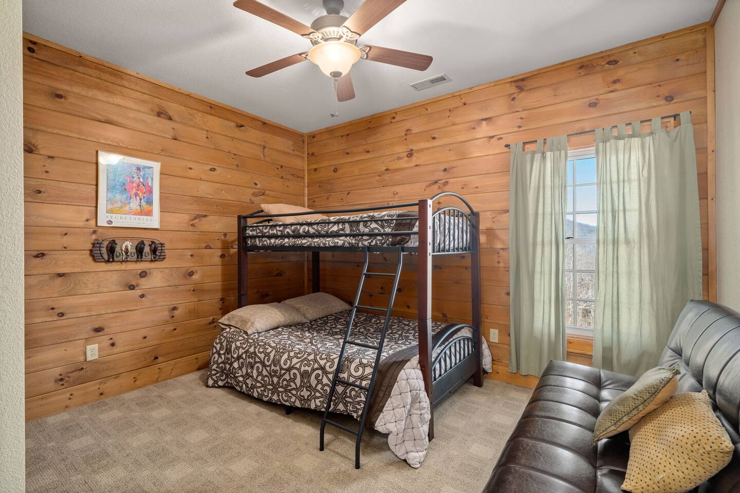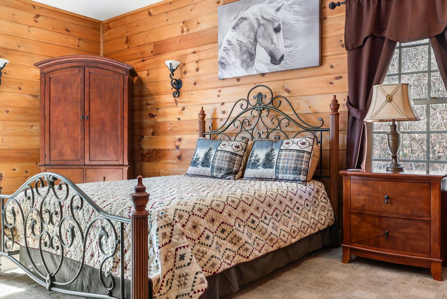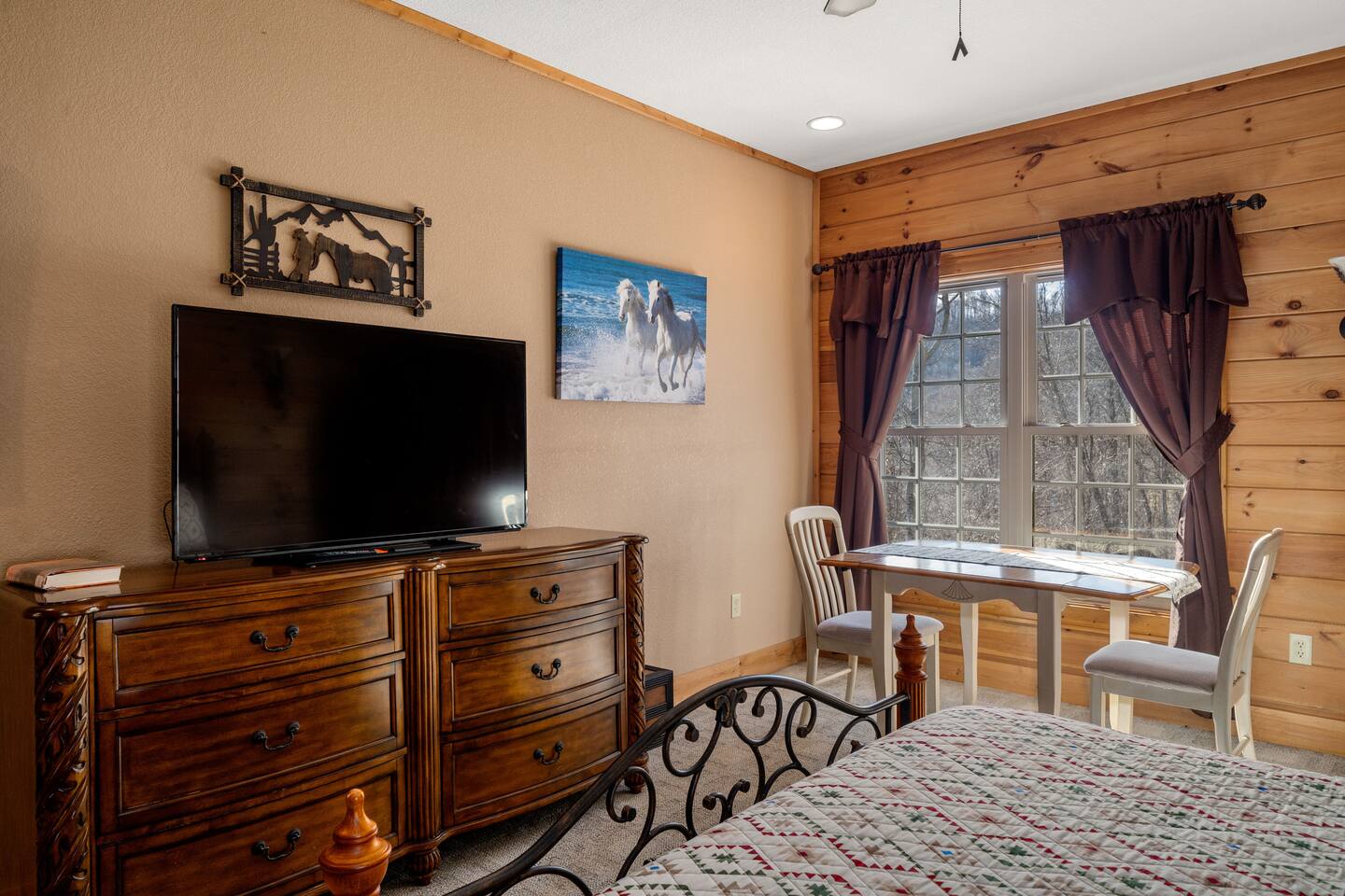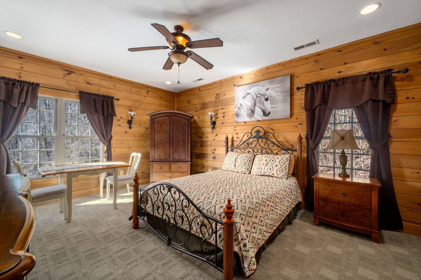 2,750 Sq Ft | Big Bear Lodge, Grand Double Deck, Magnificent Views, Large Gazebo with Hot Tub, Gas Fireplace Excellent Cell Service, Reliable Wi-Fi (for remote workers), paved/maintained roads to cabin, driveway is rough concrete/inclined and not recommended for motorcycles/trailers. 1King/2 Queens/Bunk Beds Hike, golf, ski, shop, or simply kick back with your closest friends and family with the Great Smoky Mountains as your backdrop at this luxurious Waynesville cabin! Bedroom 1: King Bed | Bedroom 2: Queen Bed | Bedroom 3: Bunk Beds | Bedroom 4: Queen Bed OUTDOOR LIVING: Grand Double Deck, Views of the Smokies/Blue Ridge Mountains, patio/lounge furniture, fire table, propane grill. NEW Gazebo with hot tub. INDOOR LIVING: Chef’s kitchen, 5 SmartTV's, (cable/streaming) gas fireplace, books/games, ensuite bathroom w/ jetted tub & walk-in shower, open-concept layout, natural light. Spacious loft with wet bar and extra seating for dining/games/puzzles. Loft also has 2 Bedrooms with bath and double sinks. KITCHEN: Fully equipped, granite counter, gas stove, Keurig & drip coffee makers, tea kettle, microwave, toaster, toaster oven, Crockpot, blender, waffle maker, cooking utensils, pots & pans, ice maker, spices, dishware & flatware GENERAL: Free Wi-Fi, ceiling fans, central heat & A/C, towels/linens, washer/dryer, hair dryer FAQ: Exterior security cameras (facing out), 1st-level to driveway PARKING: Gravel driveway (3 vehicles) Other things to note: In addition to the nightly rate, the following fees will apply: $175 Cleaning Fee (includes extensive cleaning and turnover before every guest) $100 Pet Fee – (1 DOG LIMIT – 50lbs) 11% Tax – NC State & Haywood County Taxes. Just 25 minutes to the Blue Ridge Parkway Just 25 minutes to Cataloochee Ski Resort 40 minutes to Harrah's Casino in Cherokee 45 minutes to the Great Smoky Mountain National Park 40 minutes to Asheville's famous BILTMORE HOUSE 20 minutes to Waynesville 15 minutes to Maggie Valley Festival Grounds This cabin has enhanced CDC cleaning measures that are implemented. The property is cleaned with disinfectant and contactless check-in and out.